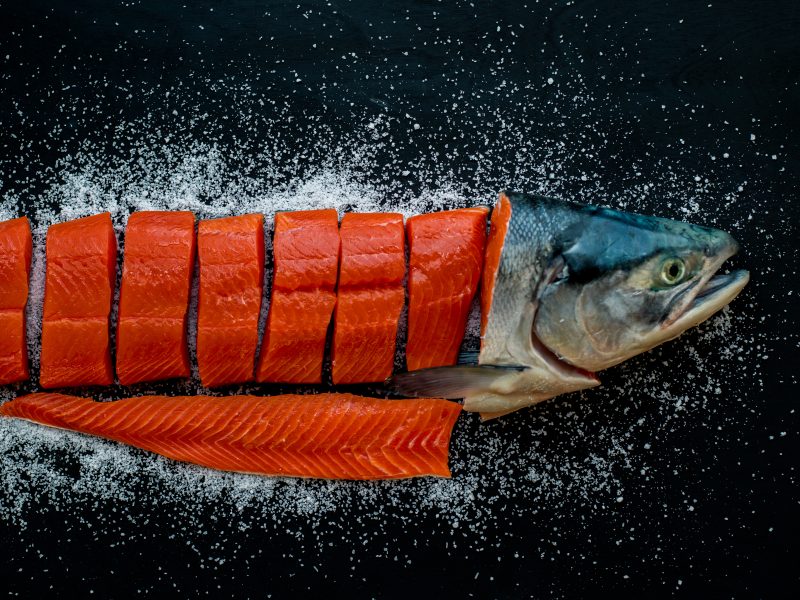 Portioned Sockeye Salmon with Head and Tail in Salt – with Logo